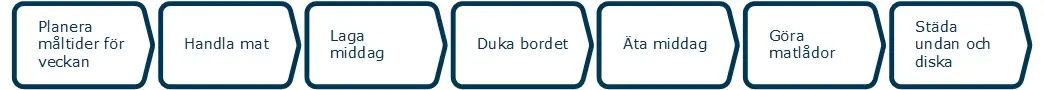 De ifyllda objekten illustrerar att processen börjar eller slutar med dessa. Bilden är ett exempel på en process och vi antar inte att allas middagsprocesser ser ut som denna.